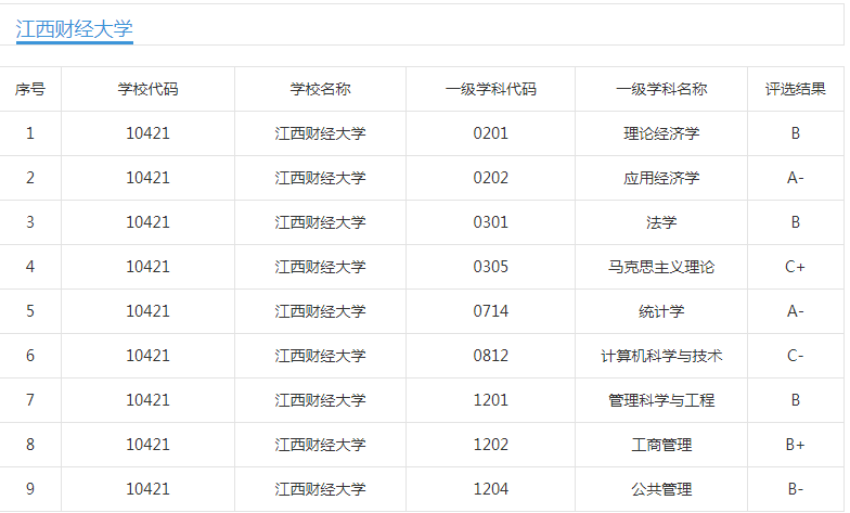 据该校统计,此次评估中,财经类院校有2个以上学科获评A等级的高校共有其7所,其中对外经贸大学获评2个A和2个A-,上海财经大学获评2个A和1个A-,东北财经大学获评1个A和2个A-,中央财经大学获评1个A+和1个A-,江西财经大学和西南财经大学、中南财政政法大学均获评2个A-。此外,此次评估中江西省学科获评A等级的高校共3所,除江西财经大学获评2个A-外,南昌大学获评1个A,江西师范大学获评1个A-。
