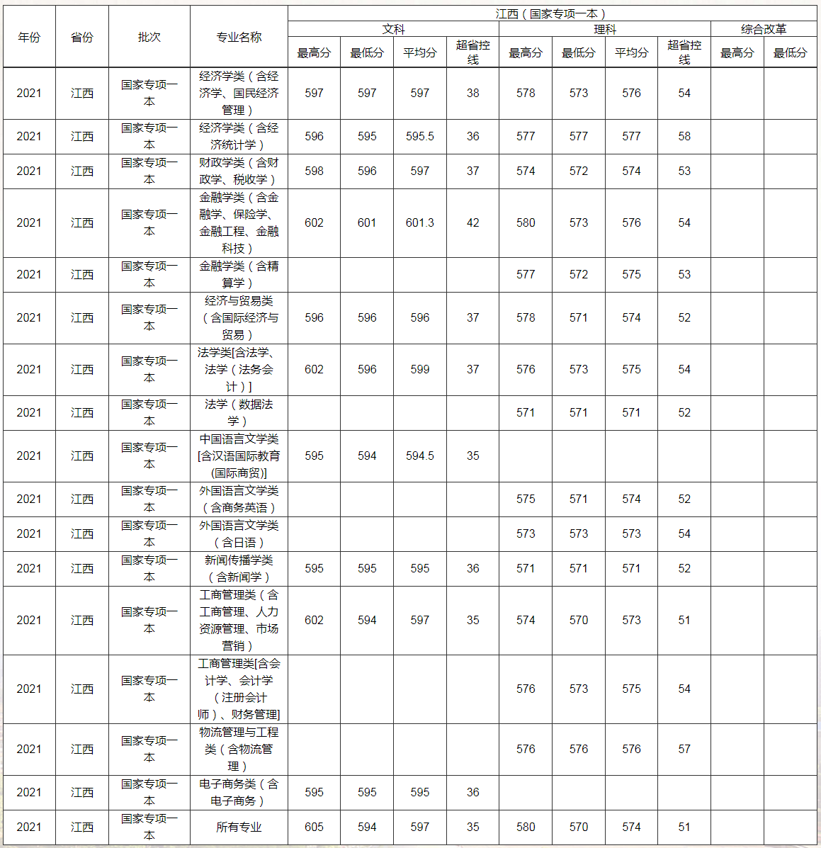 同时,针对江西考生特别指出:根据往年录取情况,以考生排位测算,江西考生理科排位在2万3千名以内;文科排位在4400名以内,认同我们学校的办学理念和校训,建议可以填报江西财大相关专业。
