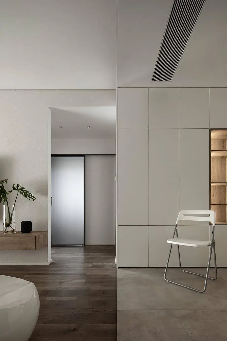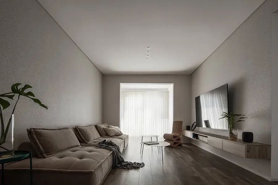 除此之外,吊顶两侧装修阴影槽,借着细小线条让空间感更立体。