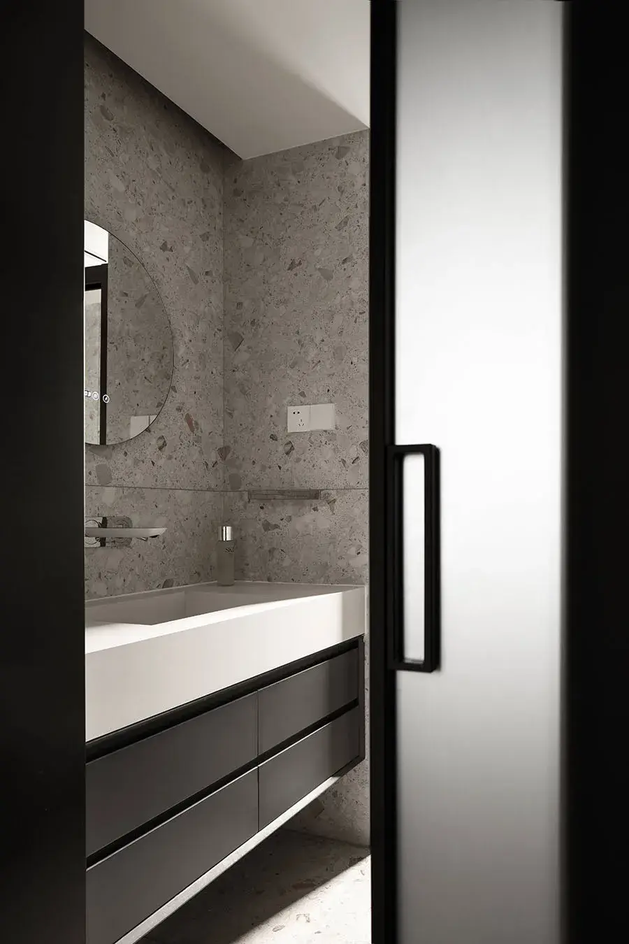 于是对空间进行扩充改造,通过挪用部分主卧室的面积,让卫生间功能得以完善,同时也创造了简单的"干湿分离"布局。