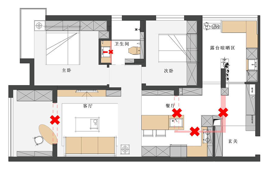 通过改变原有走道路线,换得一个独立的玄关空间,