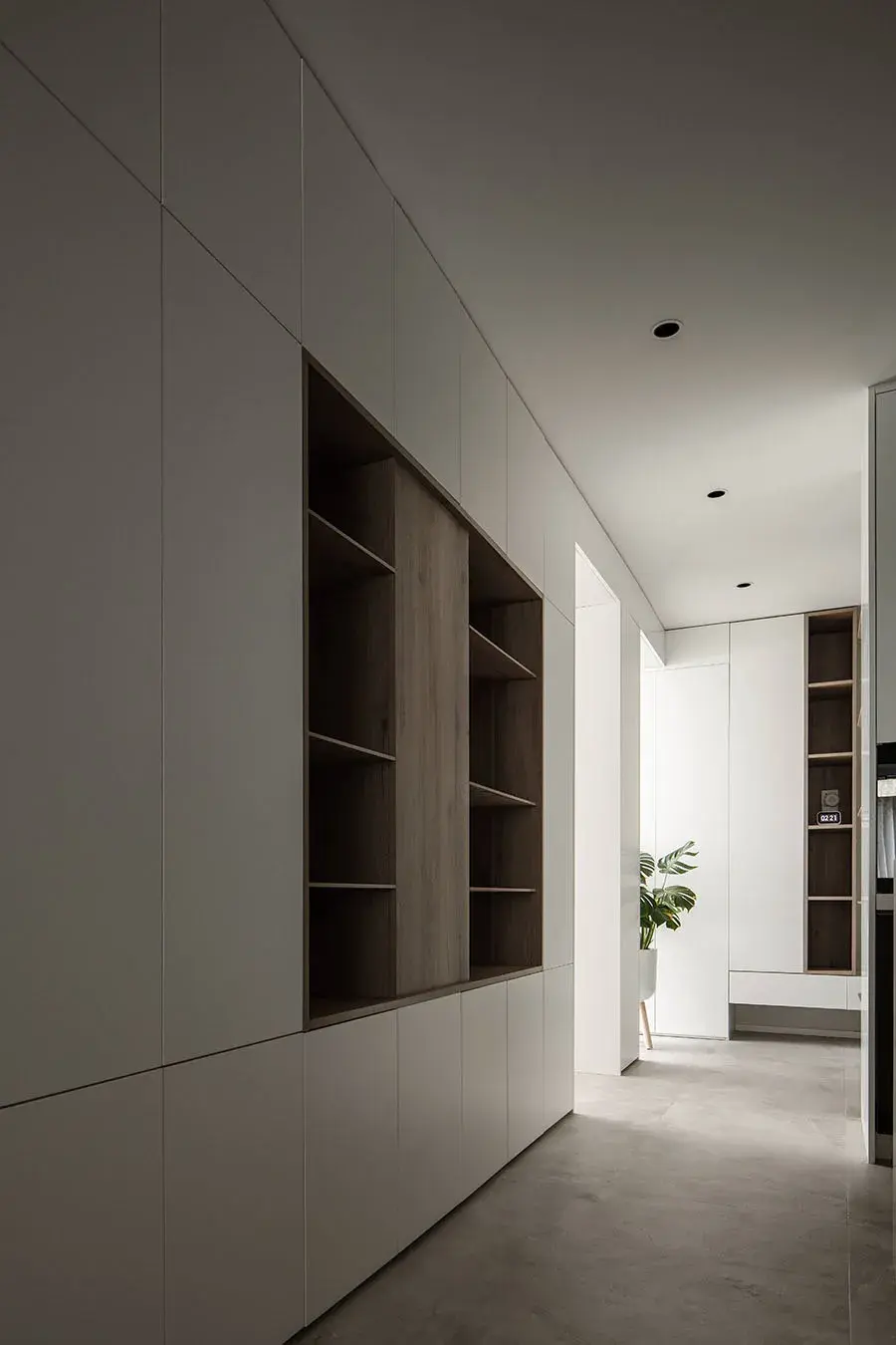 改造后,拆除原本座落于入户区与厨房之间的薄墙,并通过打造新墙,重新规划进门动线及重塑玄关场域,进而赋予收纳功能,也化解"开门见光"的缺点,合理运用每一寸面积。