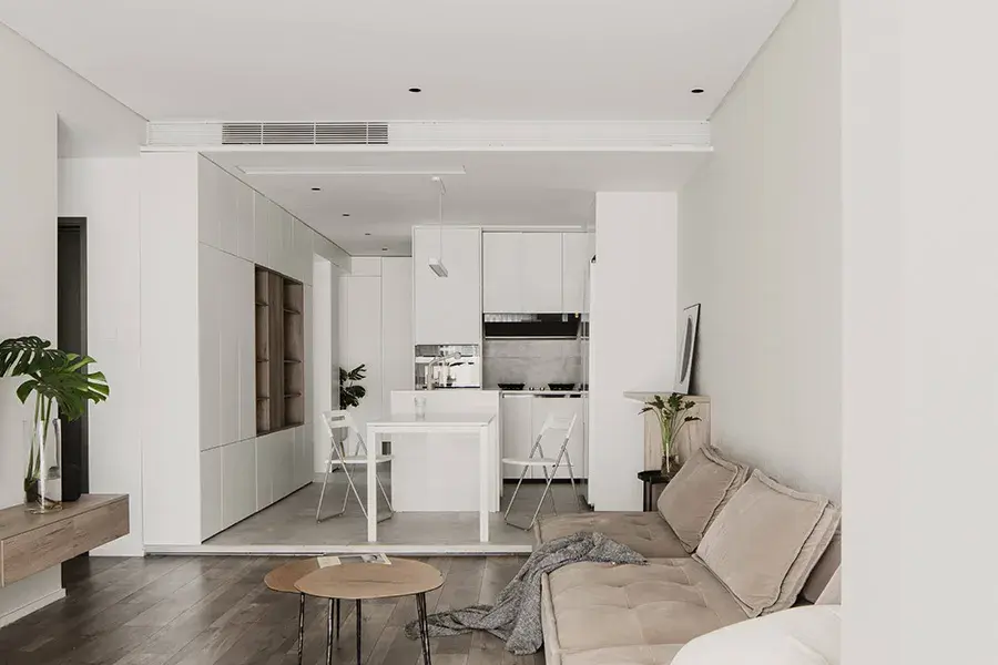 其中,客厅采更用了大面积的留白处理,