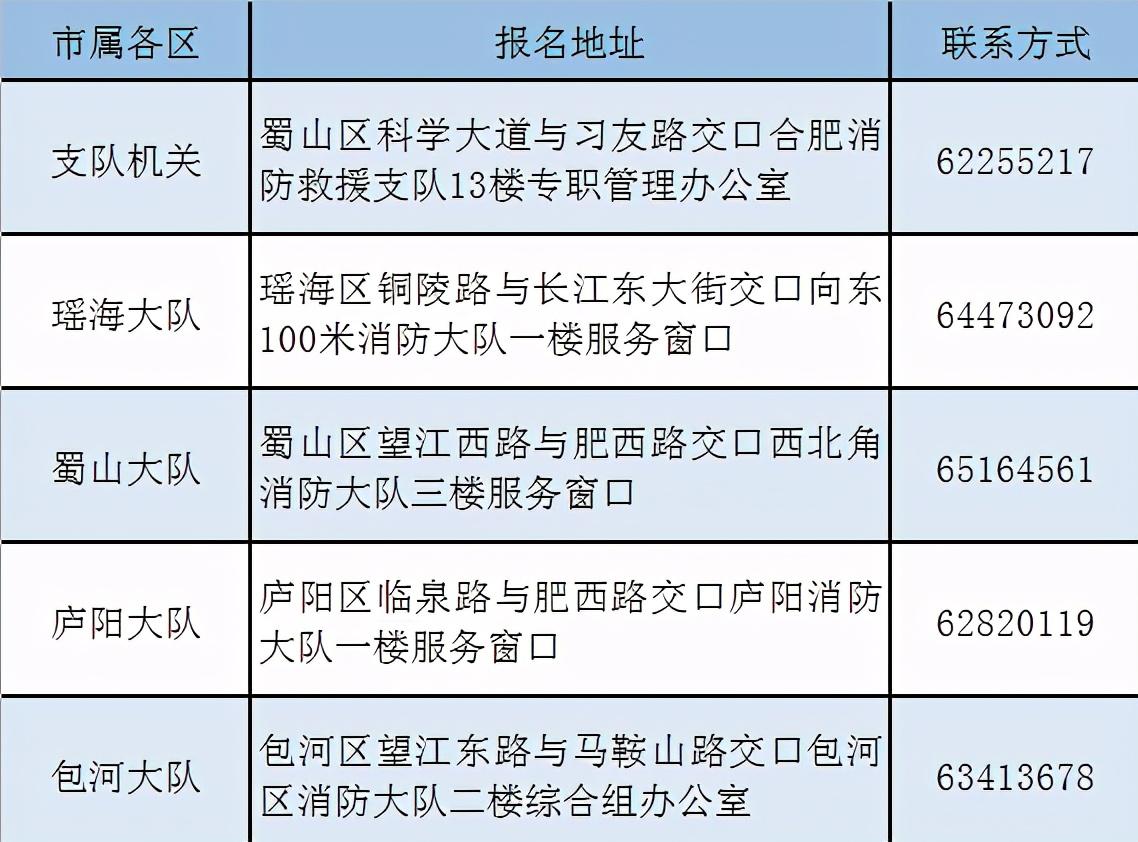 合肥市消防救援支队统一对招收人员进行资格、政治审查,体能测试,心理测试,驾驶技术测试,笔试,经面试合格后在支队后勤部门组织下统一到三甲医院进行体检,确定体检合格人员。