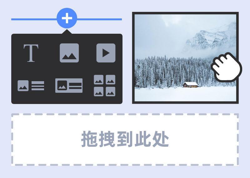 点击模板进入后台编辑页面,在这里你可以添加各种功能版块。网站页面就是由各种不同版块做成的,如果做个人插画、作品集网站,你可以添加标题、网格、相册、大尺寸媒体、横向布局、纵向布局、商城、博客、联系方式、自定义表单等版块来展示作品,和访客沟通。
