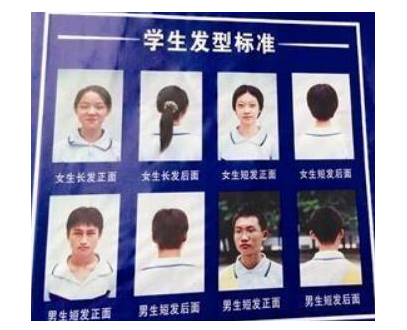 该校对女生发型的要求严格,男生也是如此,基本上就是板寸了,不少男生看到这个发型标准之后,都表示还不如直接剃光头了。而很多女生更是不愿意面对这种发型要求,但是为了上学只能含着眼泪将头发剪了。