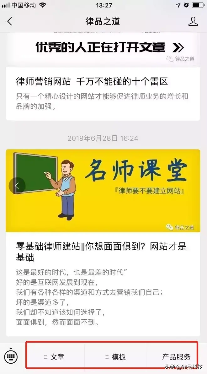 公众号可能是大家最为熟知的自媒体了,相信很多律师自己都有注册并且发布文章。目前情况来看,公众号发文自带流量的可能性已经很小了,一方面是公众号的泛滥,另一方面的受众对于内容的要求已经越来越高,律师在忙碌的工作中很难再抽出精力去做内容营销了;但是依然也是不可缺少的营销方式了,所以我们仍然推荐去运营。