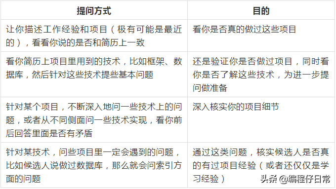 既然面试官无法了解你的底细,那么他们怎么来验证你的项目经验和技术?下面总结了一些常用的提问方式。