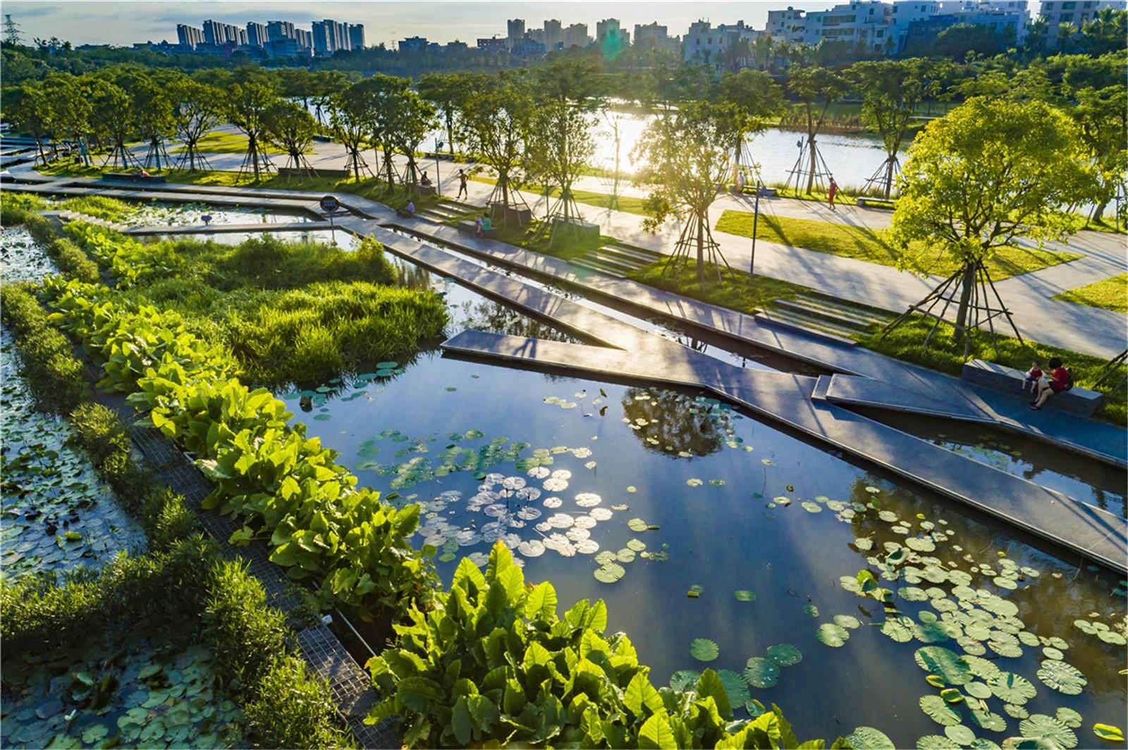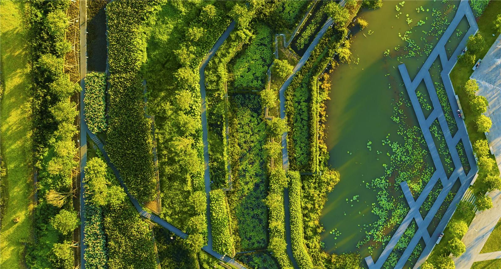 通过这些景观设计策略,原先持续恶化的河道和亲水性极差的城市边缘地带,已成功改造成一个集雨水净化、生境营造、满足市民休闲功能于一体的海绵公园 。