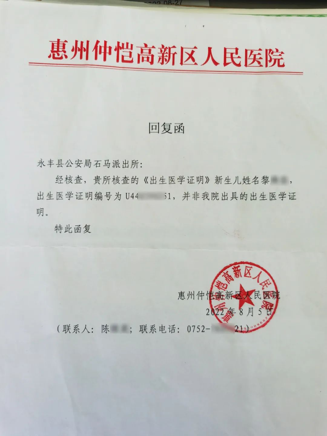 黎某离开后,户籍员立即向所领导汇报,并联系相关医院协助鉴定该证件的真伪。不久,相关医院回复称,该院从未出具过黎某所持有的《出生医学证明》,证件系伪造。