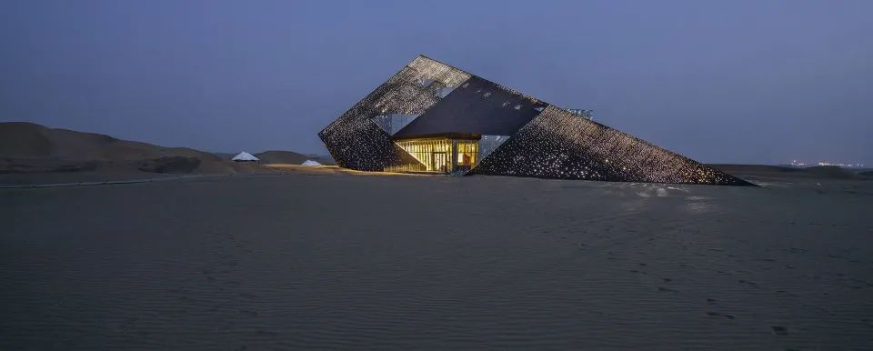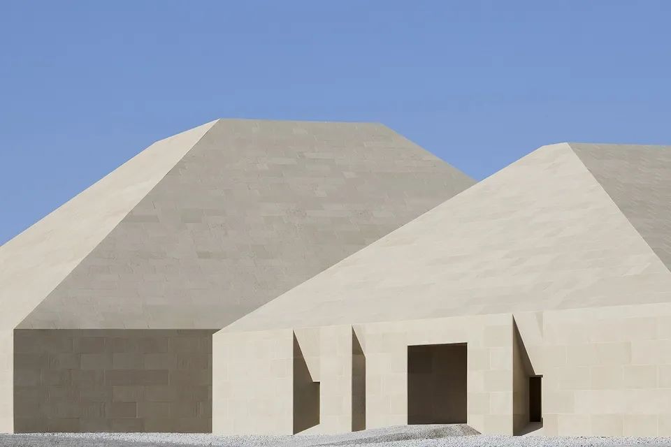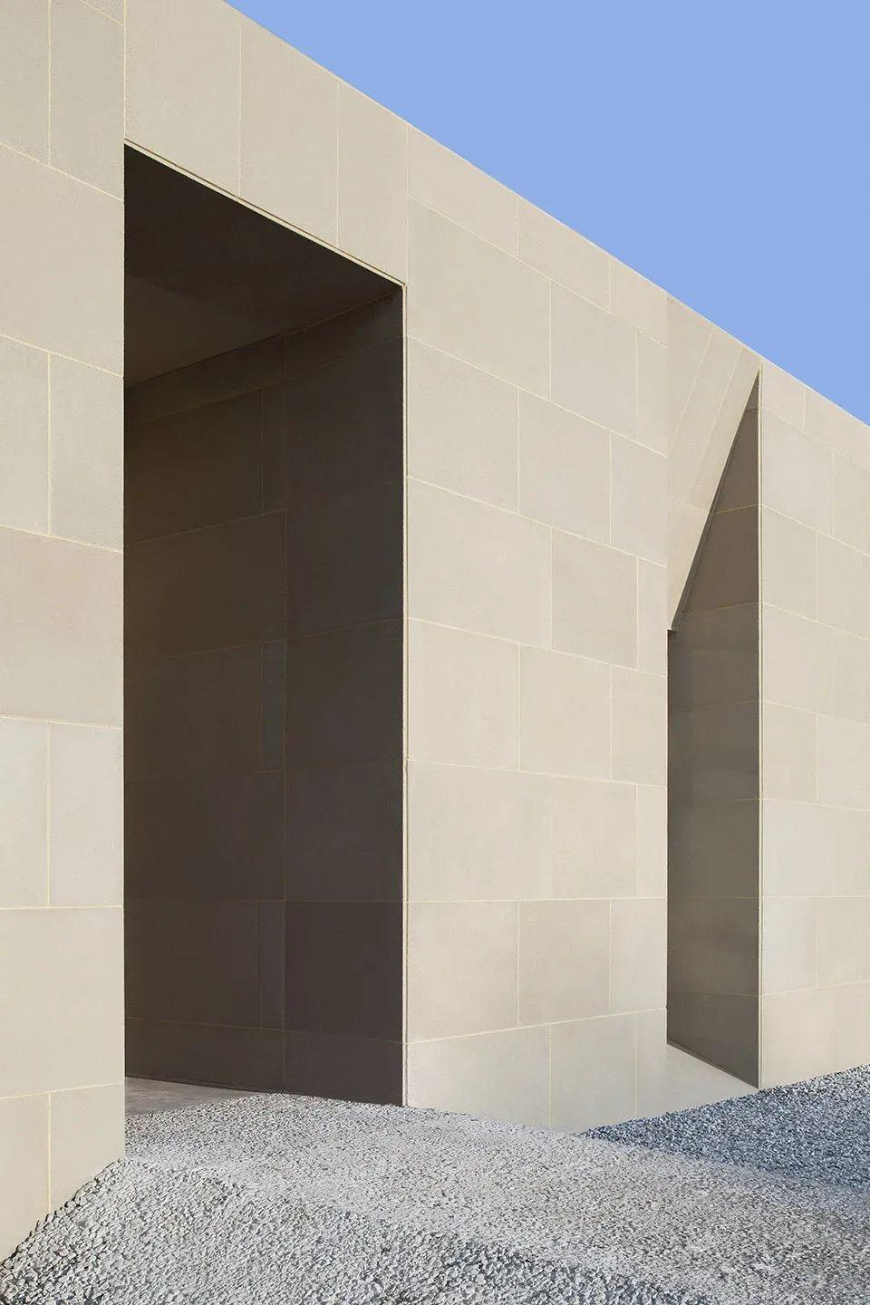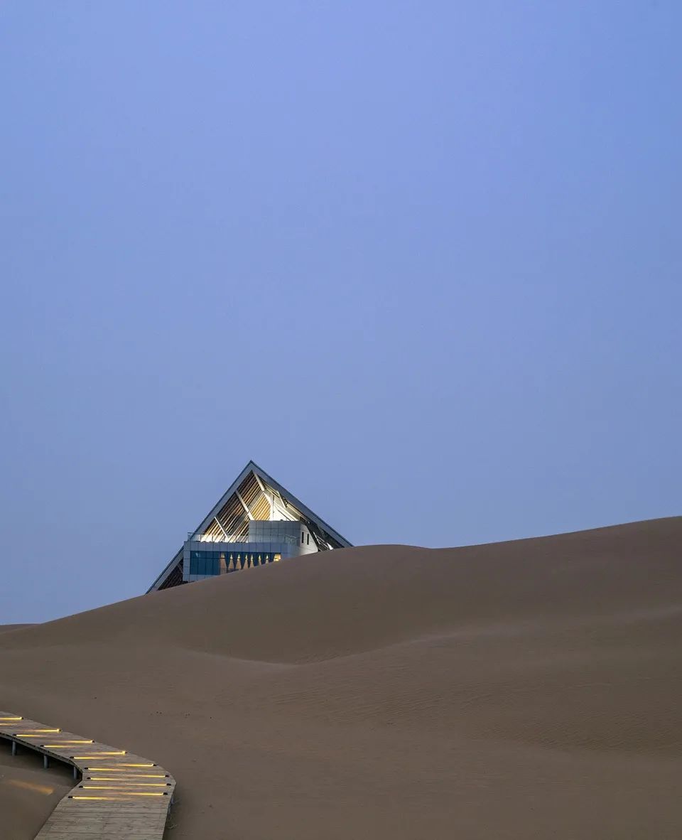 有赖于建筑师对直线与几何的巧妙运用,从各个角度观赏建筑都有不同的形状。它如一个埋在沙漠中的宝盒,因风吹而展露了部分真颜。神秘、又