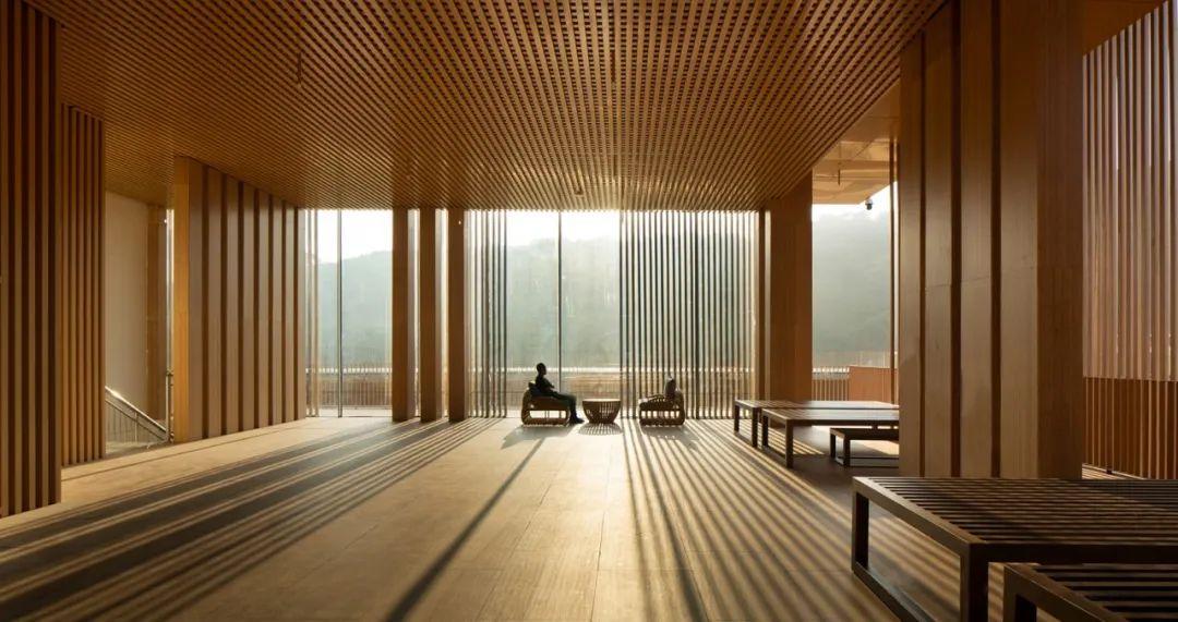 接待中心设计秉持朴素、理性的建造观,以绿色、低碳的可持续理念,减少混凝土等不可再生材料的使用,大量采用可再生、可回收的钢与集成竹木材;最终以“半透明”、“均质化”的界面建立起人、空间、风景这三者之间微妙相融的东方禅蕴。