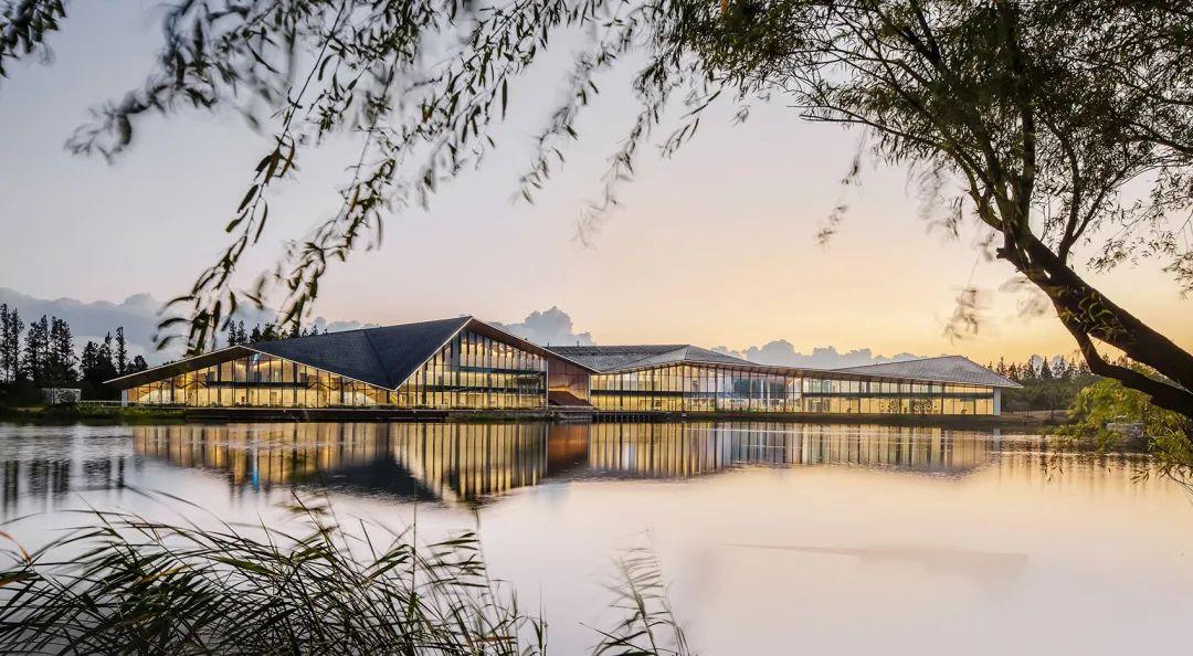 长兴郊野公园是一座以“自然、生态、野趣”为特色的远郊生态涵养型郊野公园。项目位于长兴岛郊野公园花溪湖畔北侧,与公园的主入口隔湖相望,被一片高大茂密的水杉林环绕。