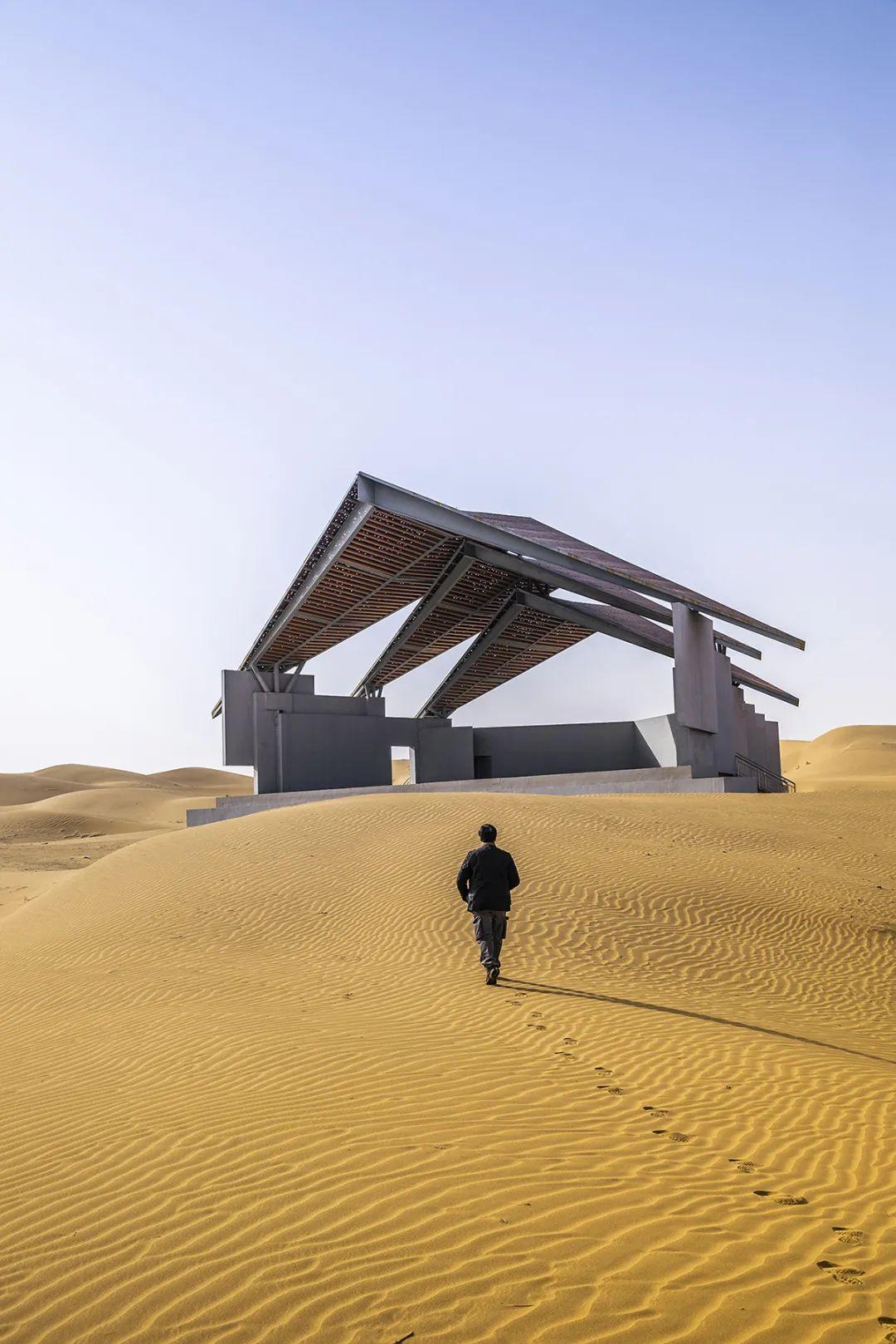 项目位于宁夏中卫市沙坡头景区范围内,在此处,沙漠是最直观,也最清晰的元素。起伏的沙丘,连绵向远方,天气好的时候可以看到北面远处的山脉。