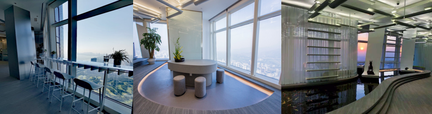 何雅婷:我们位于深圳平安金融中心北塔第107层。在这里上班,一方面等同每天省下200元平安金融中心云际观光层的门票,办案之余,抬眼即见窗外云卷云舒,日出日落,自有不畏浮云遮望眼,自缘身在最高层的感慨;但另一方面,如果你不适应高速电梯,建议多咽几口口水以防耳膜不适,如果你恐高,窗外风景给你带来的可能不止心胸激荡。有一位恐高的天同小伙伴,一旦闭上眼超过五秒钟就会为自己身处几百米高空而忧惧,于是他养成了从不午休的“好”习惯。