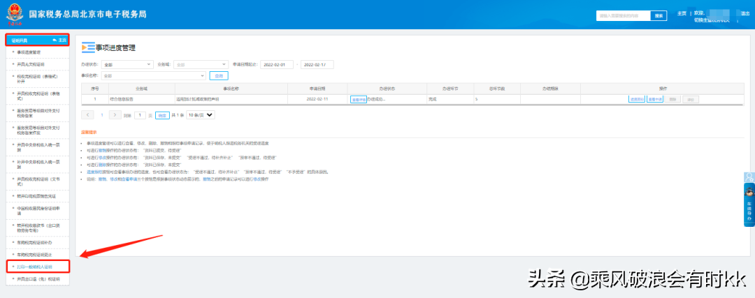 二、证明开具—打印一般纳税人证明。