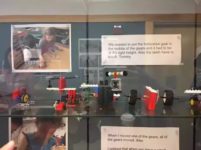 在科学课上,科学老师就自行车的这一学习课题,引出与gear(齿轮)相关的物理知识,让孩子们进一步了解到gear之间的运动模式,还利用乐高组件设计了各种不同的用gear的作品。