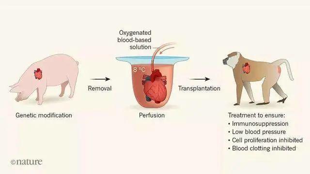 2018 年 12 月,Nature 发表了一项研究,德国慕尼黑的医学团队将基因修改后的猪心脏移植到狒狒身上,最长寿的一只存活了 195 天,其余四只存活了 3 个月左右。