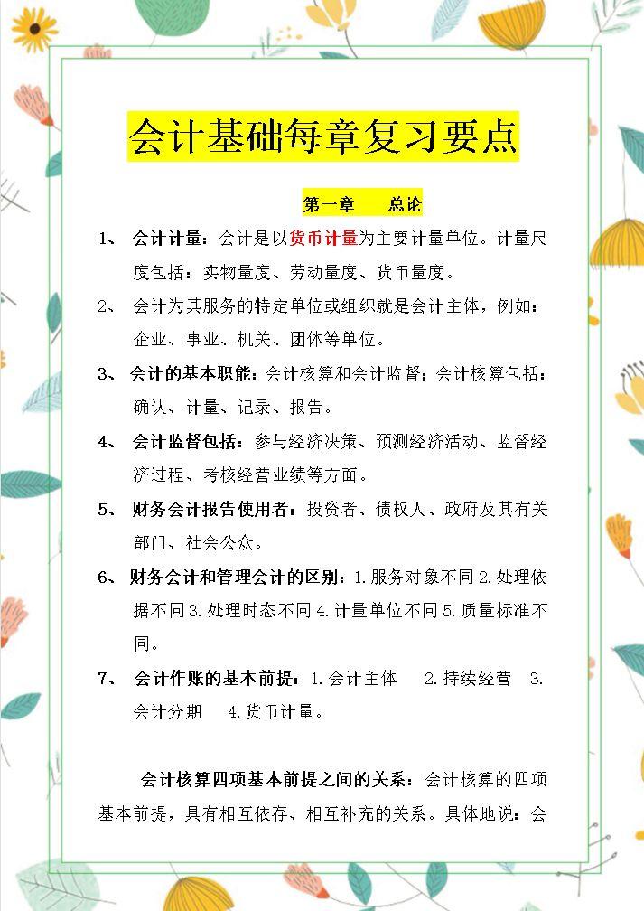 篇幅有限,会计基础的章节重点就先给大家整理到这了,希望能帮到各位,谢谢。