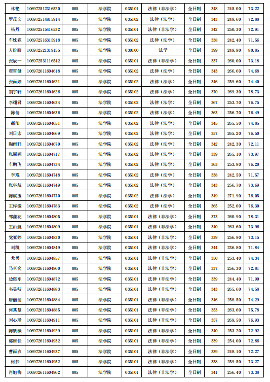 非法硕录取人数116人,最低分335分,最高分373分。