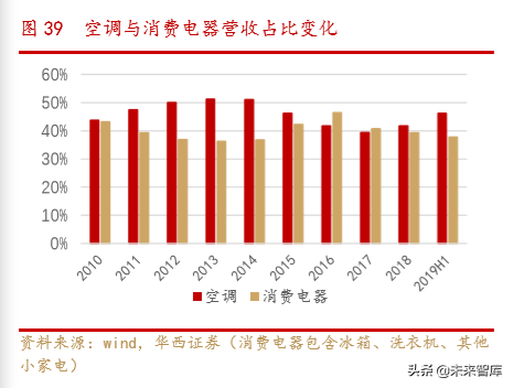 在消费电器业务层面,我们认为美的品类运营能力出色,多品类市占率领先优势 会得以延续,冰箱和洗衣机目前市占率排名前三,同时小家电新品的开发也会助力公 司消费电器业务的成长。