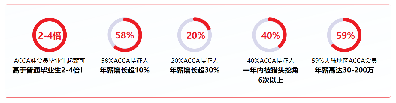 根据ACCA官方数据,ACCA准会员毕业生起薪可高于普通毕业生2-4倍,大部分正式会员年薪则可达到30-200万。高校会计学专业ACCA方向毕业生薪酬均位于全校前列。