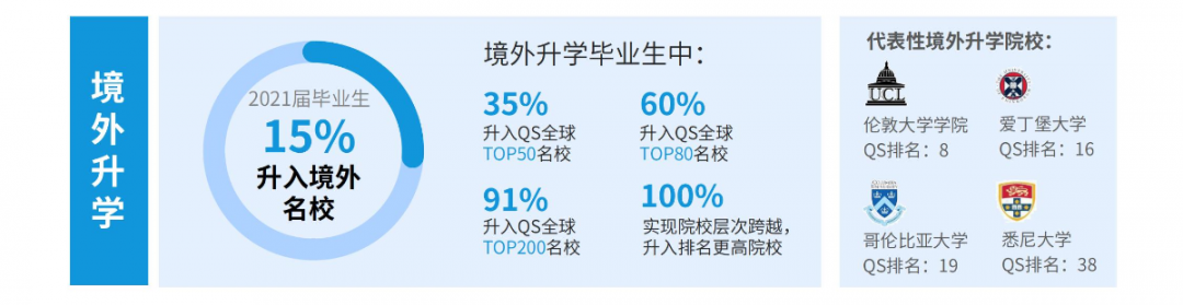 ◆ 毕业生境外升学层次普遍较高,6成留学生升入全球TOP 80顶尖名校