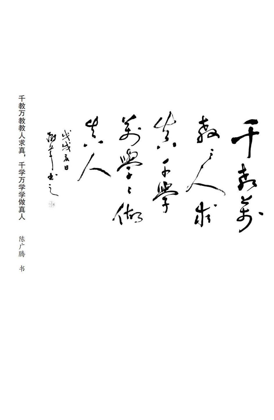 “千教万教教人求真”意思是老师要教育学生去找寻真知、追求真理、学习真本领;“千学万学学做真人“意思是学生应该掌握真才实学,脚踏实地认真做事,做一个真诚的人。一个“真”字,揭示了教育和学习的根本理念,文字浅显,道理深刻。