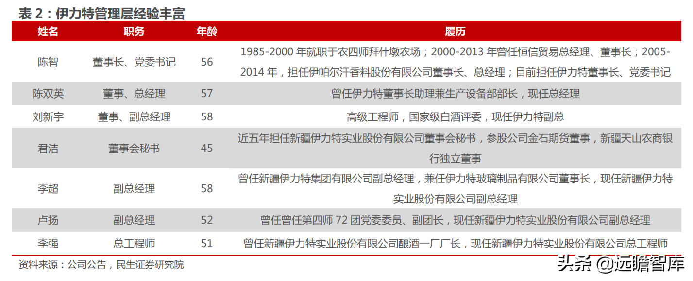 公司是第四师旗下唯一的主板上市公司,兵团第四师国资委为公司提供品质背书及渠道资源赋能。目前公司第一大股东新疆伊力特集团直接持股 41.8%,股权集中、控制权清晰,有利于公司制定决策和执行计划。