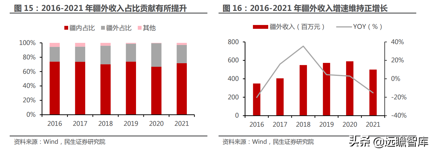 公司 2021 年疆内白酒营收占比为 71.72%,疆内仍是公司营收的核心来源,近年来公司加快了省外扩张的步伐, 2021 年疆外白酒营收占比 25.34%,16-21 年占比提升 4.71pct,近 6 年营收 CAGR 7.44%,增速存在波动性。由于公司发展前期疆外品牌影响力不足,渠道管理投入缺失,主流中高价位产品在疆外市场相对属于红海竞争。18 年公司开始着力投入疆外扩张,持续通过合作当地大商进驻浙江市场,随后开拓河南、陕西等省份。