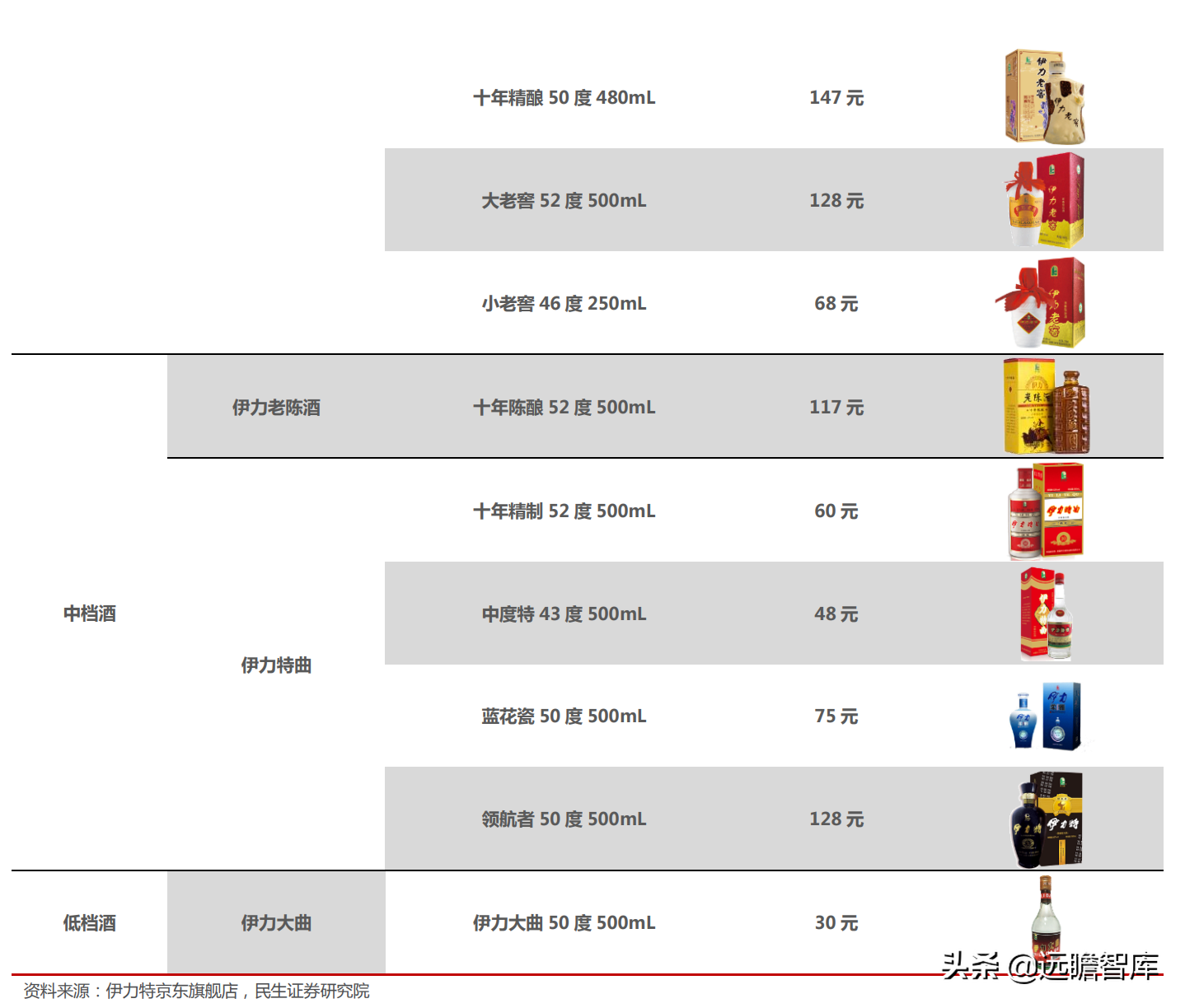 产品定位向中高端发力。近年来公司顺应白酒市场的高端化趋势,依托品牌营销、广告宣传、渠道拓展等方面,打造以伊力王酒和伊力老窖为核心的高端系列。伴随 2018 年推出伊力壹号窖,公司高端产品覆盖了 200-600 元的价格带,消费场景以商务宴请为主。