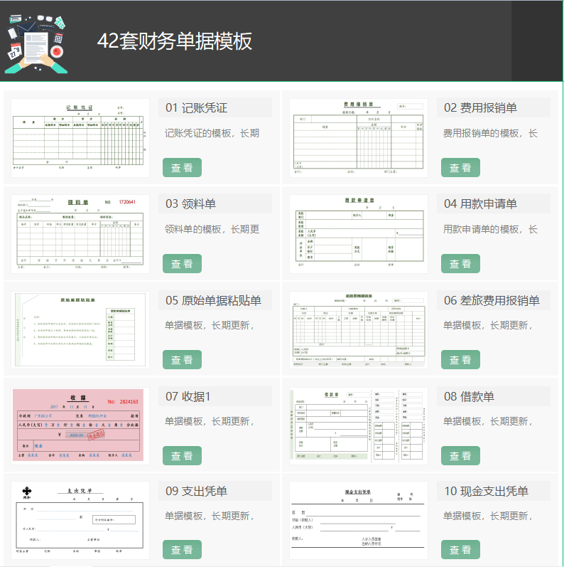 公司新来的出纳连单据都不会填写,人家是老板外甥女,不能不教,熬夜一周编制了42套财务单据模板,可以练手,学习填写模板,还支持一键打印~