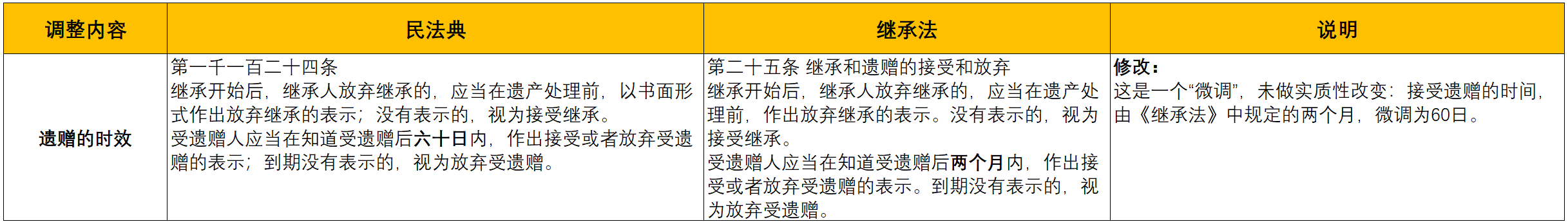 这次《民法典》继承篇对于《继承法》的修订,还有一些说法、文字上的修改,但不影响实质,这里就不再做文字上的比对了。