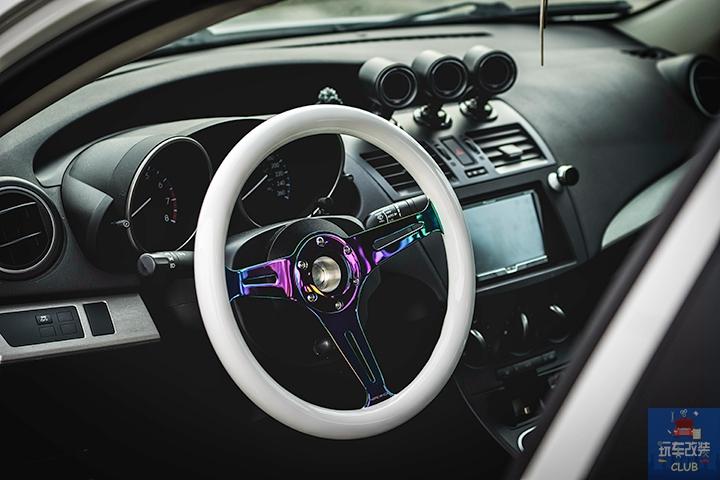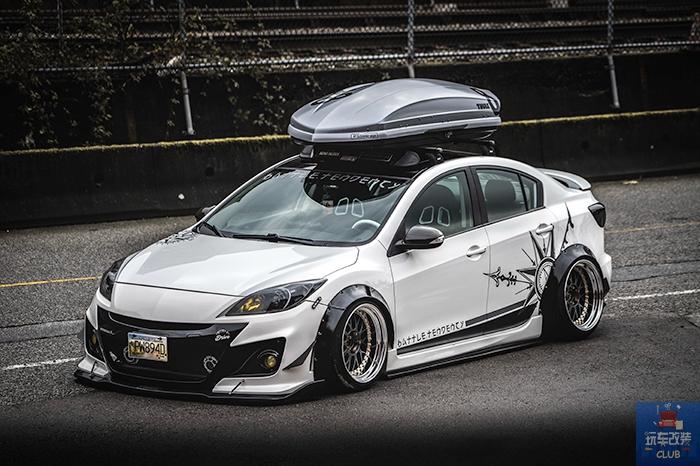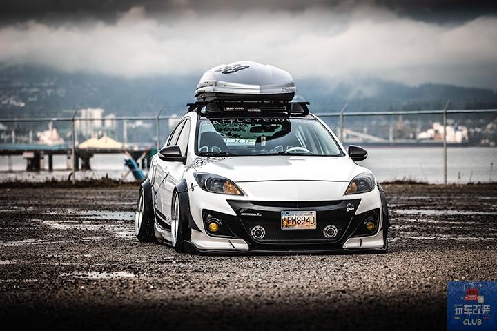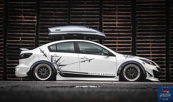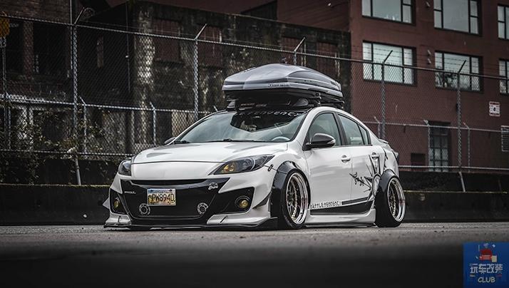 特别佩服那些能将自己的爱车,完完全全改装成自己心中所期望的姿态的车主,因为我们国内的确很难完成这样的改装,我们今天带来的这辆马自达3,已经是改装完成的作品,这辆马自达3将能改装的部位从头到尾的改装,我们先来说性能部分,安装Corksport Skyactiv SRI ,刷入MazdaEdit ECU程序,换上Corksport排气系统,还有打造性能车不可或缺的Prosport Evo系列水温计,Prosport Evo系列油温计,Prosport Evo系列电压表,最引人注目的 外观部分,采用了Knightsport BL前保险杠,STI前唇,Bayson R侧裙,重新喷涂的定制PSGWrap涂装,搭配Work Meister M1 3P轮毂,定制RGB恶魔眼灯,全车的个性化成分完全显现,而内饰部分的改装也没落下,NRG Neo-Chrome方向盘,Cipher CPA1016座椅,Infinity Reference X系列6x8 扬声器以及车顶行李箱,使得将一辆操控小车转身变成一辆马自达3旅行车!