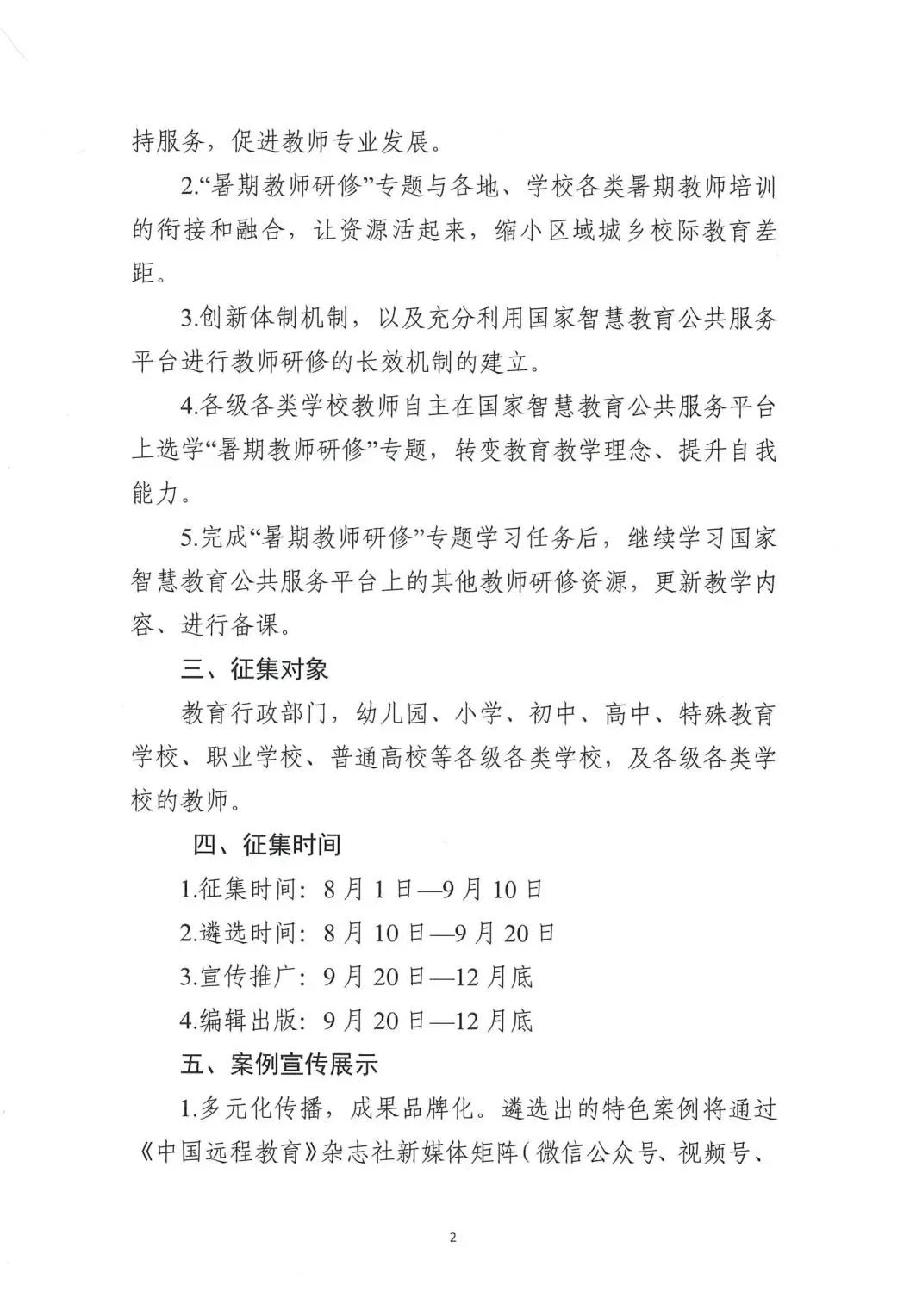 按照教育数字化“应用为王、服务至上、示范引领、安全运行”的总要求,充分利用国家智慧教育公共服务平台的“暑期教师研修”专题,促进教师师德师风素质和教书育人能力提升、推动教师成为教育变革主力军的优秀组织管理案例和优秀学习应用案例。包括但不限于: