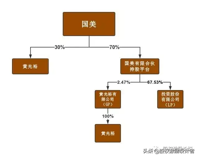 将投资人和激励员工的股权都放在国美有限合伙持股平台,黄光裕有限公司作为GP,由黄光裕100%控股。投资股份有限公司作为LP,股东为激励员工和投资人。