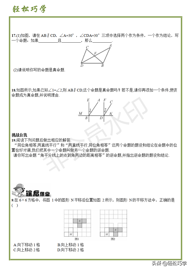 七年级人教版数学《平移》、《命题》专项训练(文末附完整试卷)