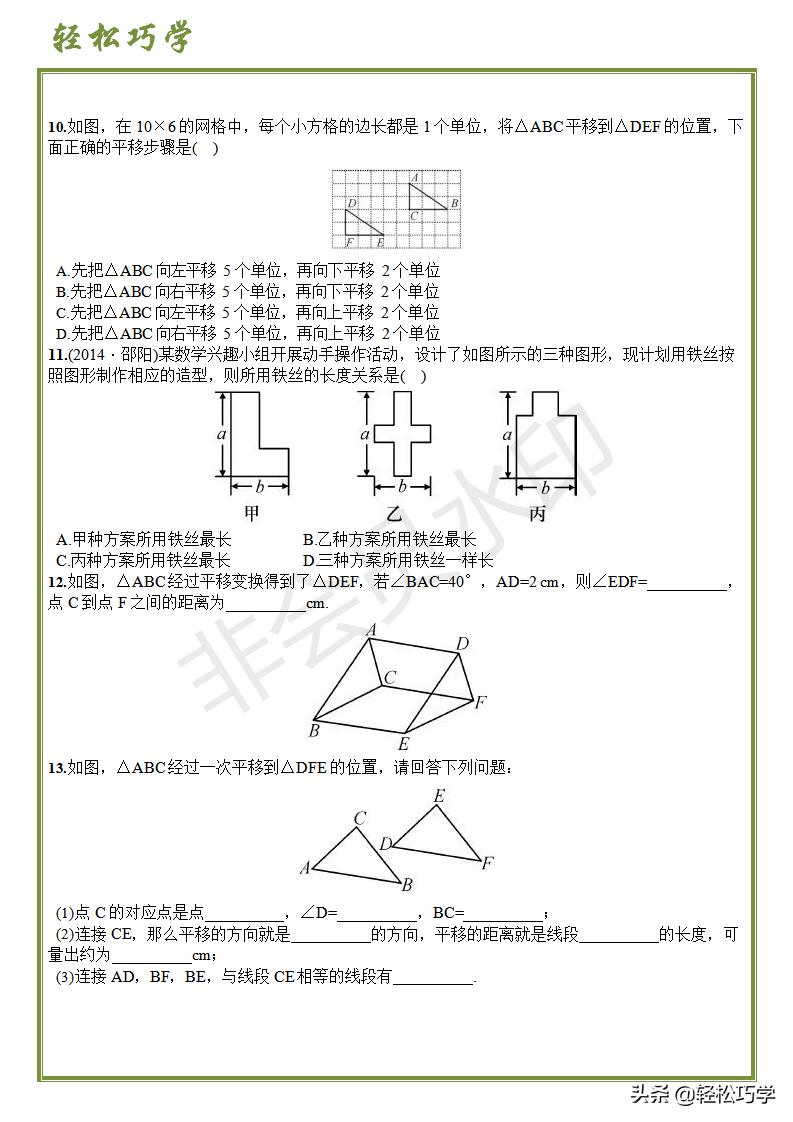 错误解析:对于平移的移动的叙述不会组织语言,表达混乱,这类题一定要注意语言通顺。