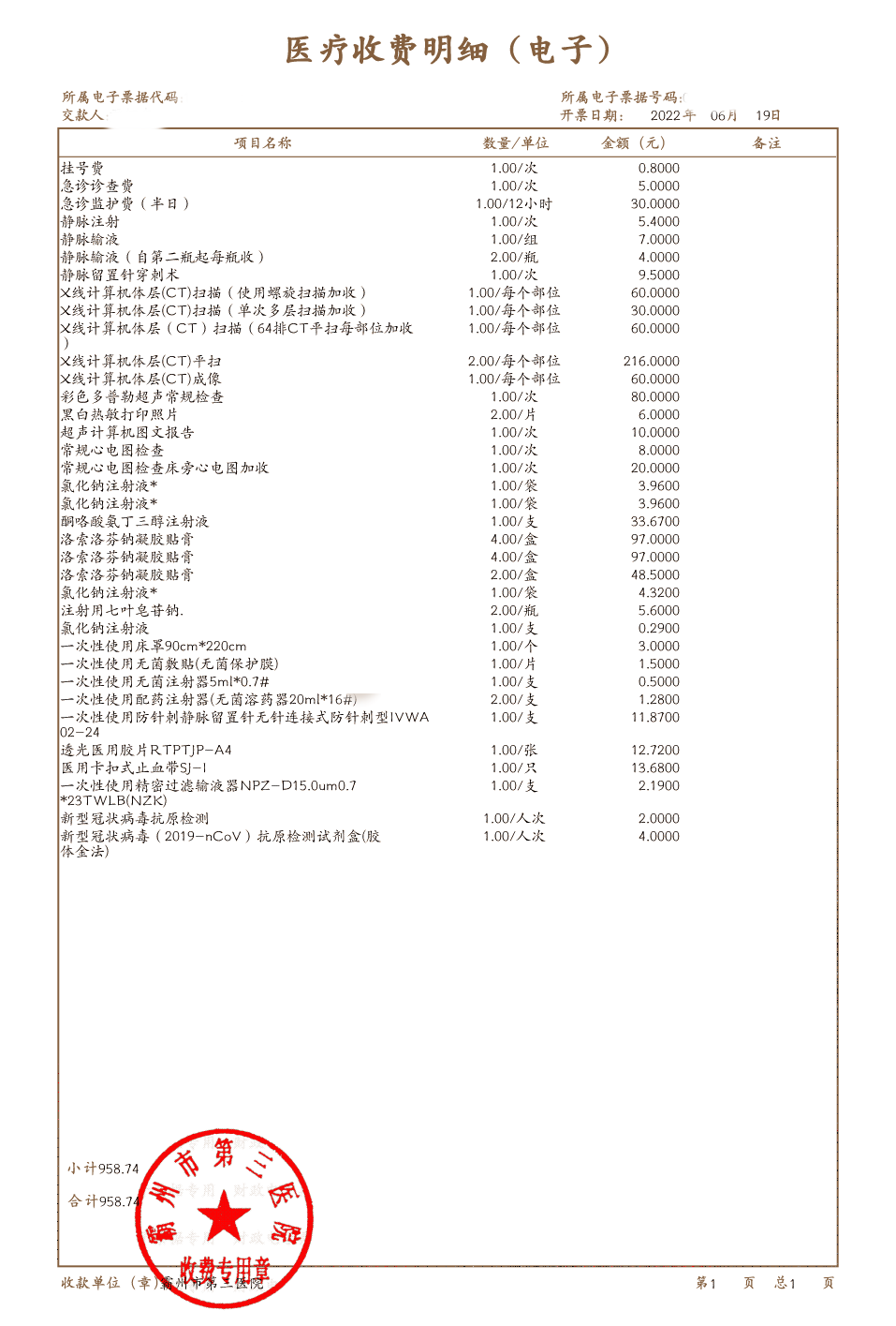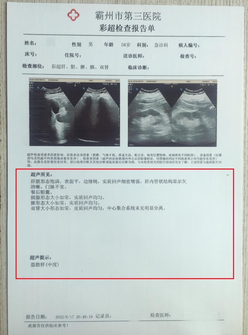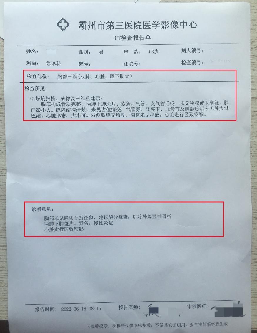 可以看到,被保人在医院做了比较详细的检查,包括:胸部CT、彩超、验血报告等等。