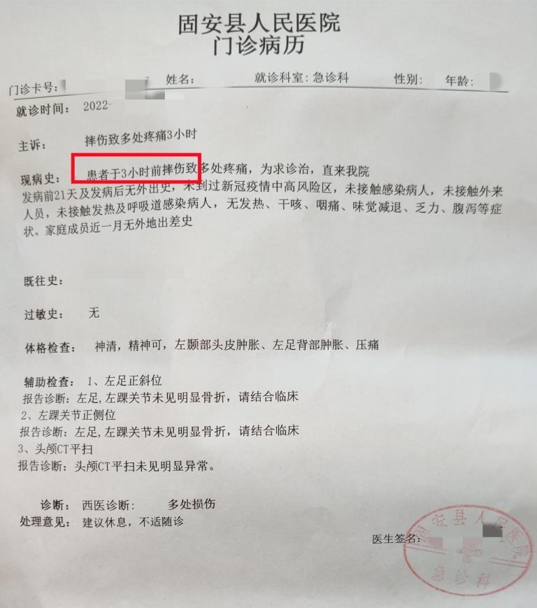 该案例是一名20岁女士,上班路上骑电动车摔伤,随后前往河北省廊坊市固安县人民医院就诊。医疗费用494元(全额赔付)。