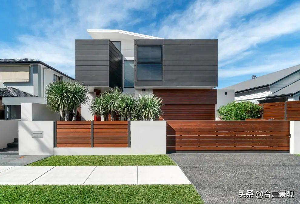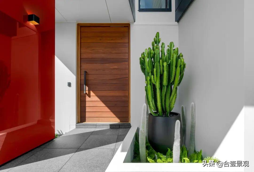 入口处的铺装和植物景观设计,低维护好打理的植物很适合现代庭院。