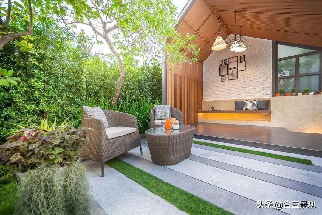 清新自然的庭院,草坪、绿植还有一棵高大的乔木。在这里摆放舒适的座椅,静静地坐在上面感受时间流淌。