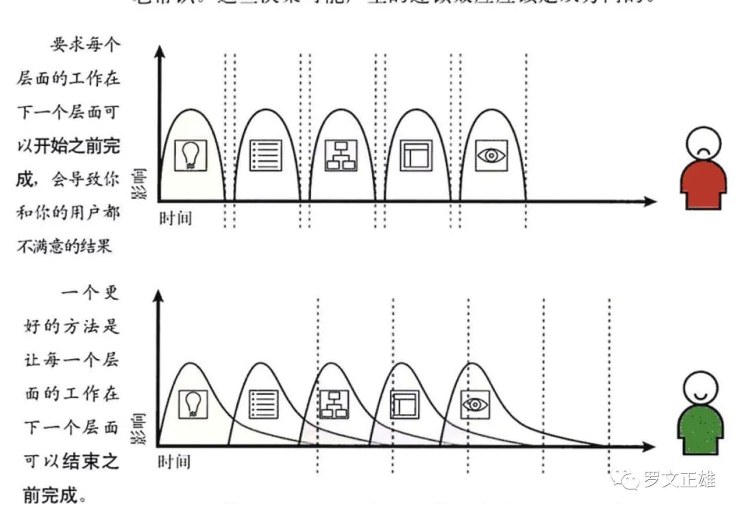 比如在范围层的时候你设计了一套销售代下单的流程,步骤A-B-C-D,然后你正常设计了结构层页面的页面间的跳转流程,然后很快你又根据页面流程设计出了页面中的跳转入口,相当于从范围层开始,你不间断地干通了结构层,框架层,共3层。