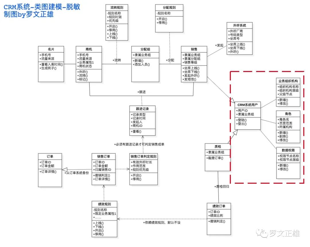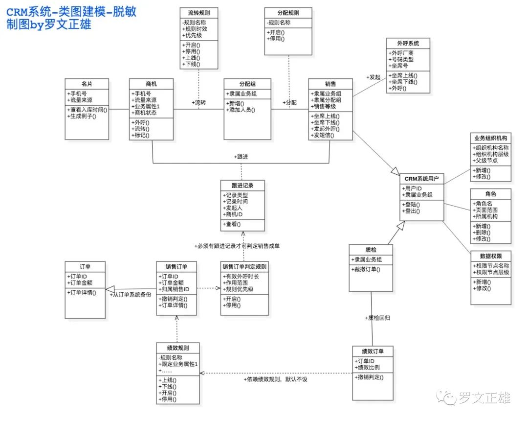 如果没有UML,可能沟通与讨论就要花费更多的时间。下图就是CRM系统设计中我整理的整套架构逻辑,已经脱敏(有点干)。