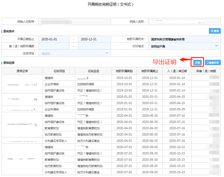开具日期起止填上日期,2020年1月1日至2020年12月31日