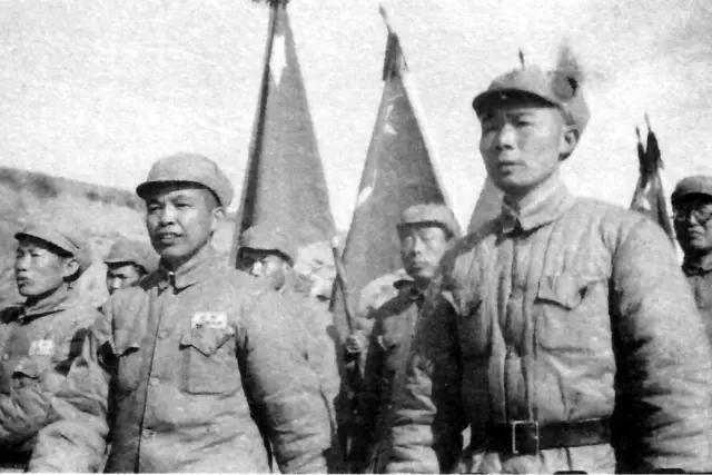 刘忠军长与起义的原国民党西康省主席刘文辉握手