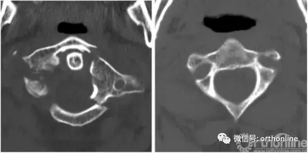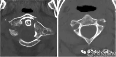 在两个病例中,对侧交叉螺钉固定均没有任何并发症,并提供了C1-C2节段良好的稳定。
