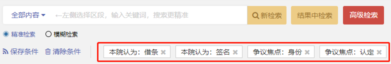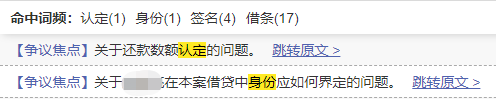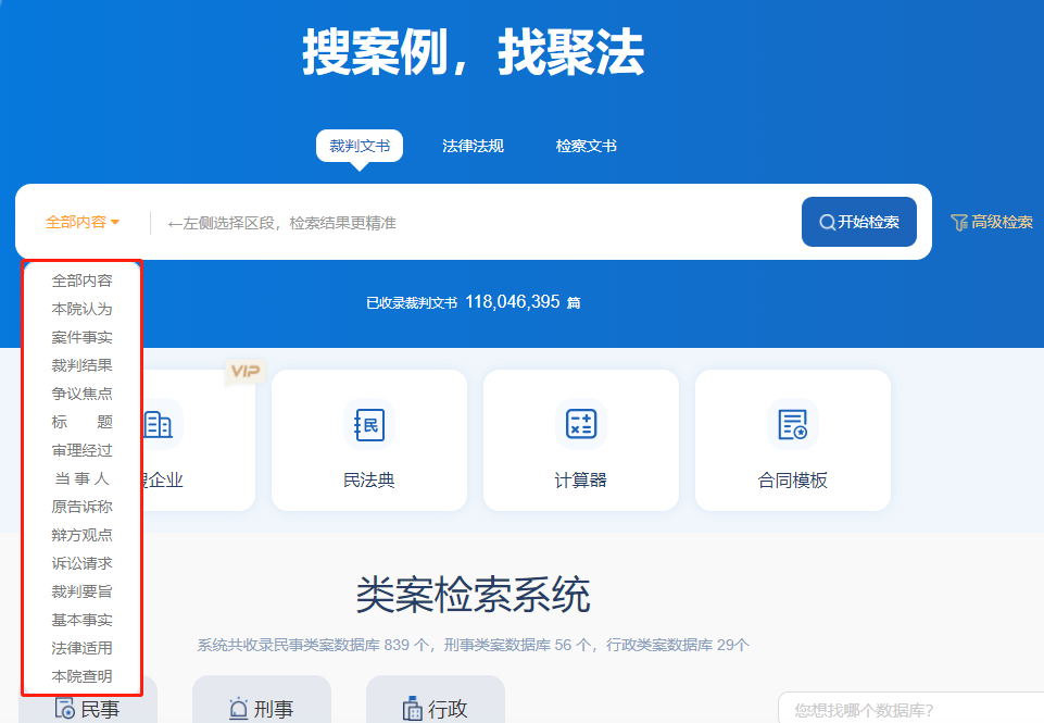 区段检索:可以直接限定在裁判文书的某一段落查找关键词。