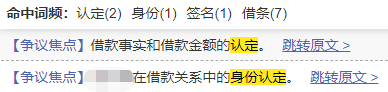 在“本院认为”区段检索“借条”“签名”,在“争议焦点”区段检索“身份”“认定”。