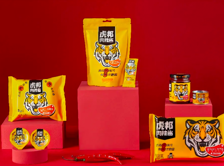 那么怎么做出差异化呢?对于这样的市场,渠道差异化以及围绕渠道差异化进行品牌战略优化、产品服务优化升级,是绝对的金科玉律。在这方面,有个新品牌“虎邦”,通过围绕渠道差异化,迅速做出了自己的价值。经过市场分析,他们发现不能像老干妈那样在商超、线上商城等模式领域与对方竞争,而是瞄准了外卖和电商渠道,通过将虎邦肉辣酱打造成爆品,让虎邦成为肉辣酱第一品牌,迅速占领消费者心智。